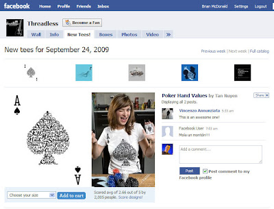 Fan pages do have a nicer layout than the group pages and have tabs to group information at the top of the page. There is even a custom tab that allows you to paste HTML code that is converted to Facebook Markup Language (FBML). A great example is Threadless T-shirts that used the custom tab to create a simple storefront for their fan page landing page.